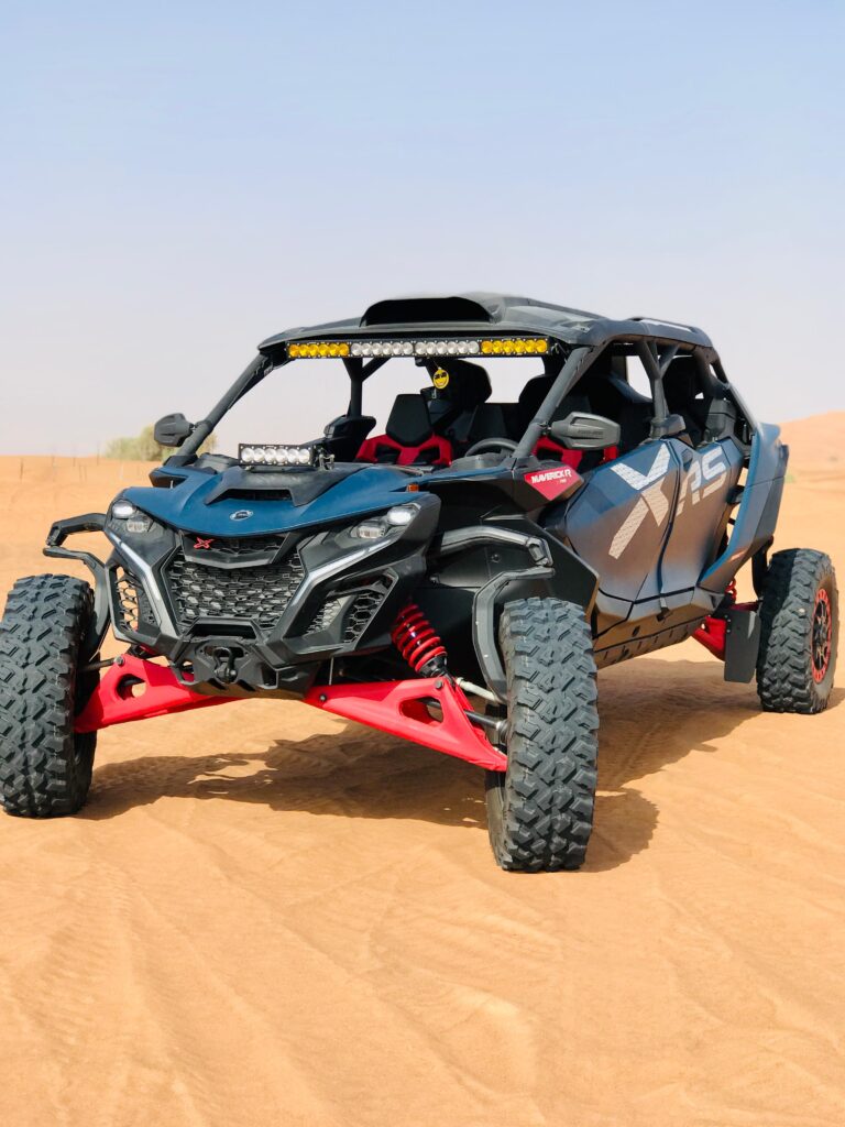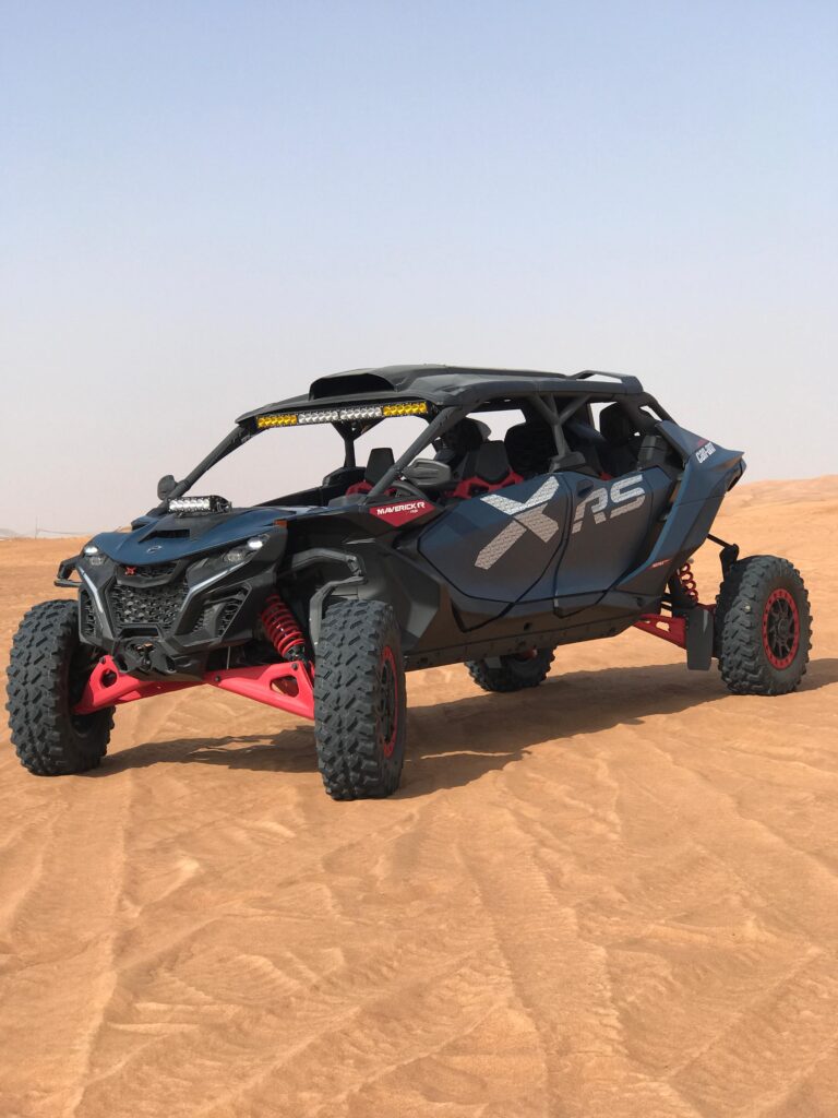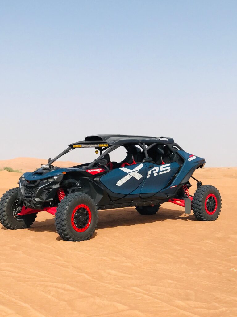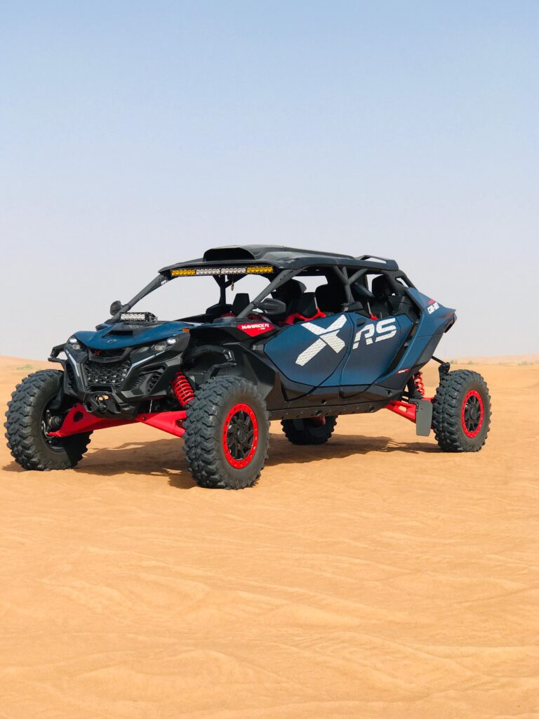 Can-Am Maverick R X Dunes Buggy Tour (4 Seater) – the ultimate choice for families and friends who want to experience Dubai’s golden dunes together.