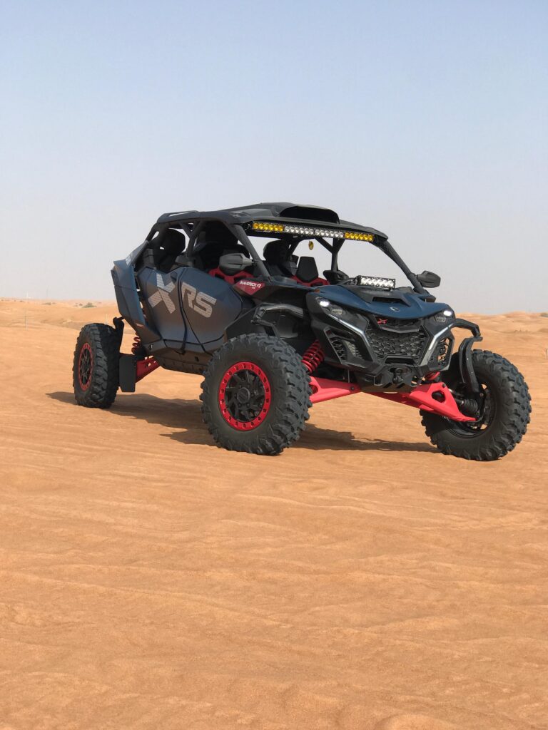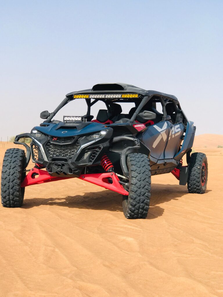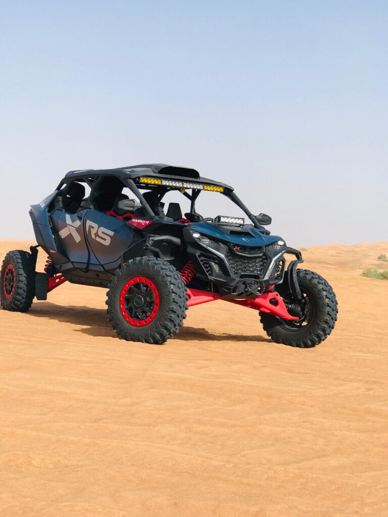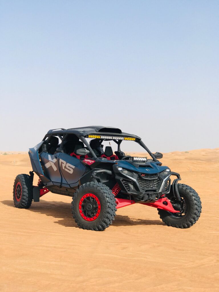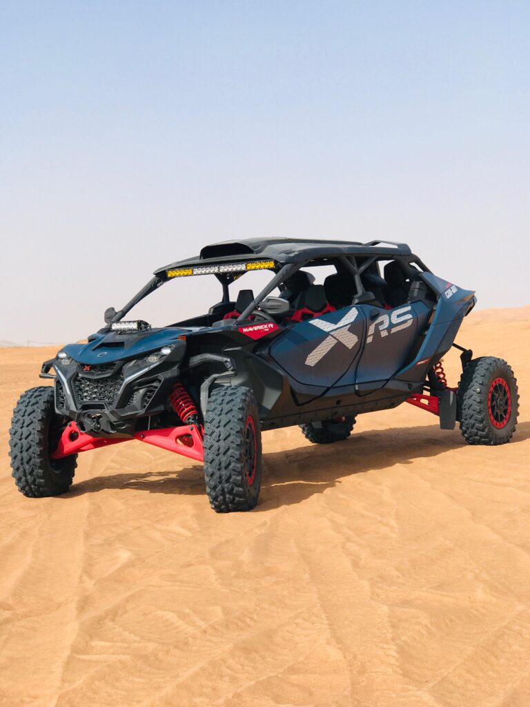 Can-Am Maverick R X Dunes Buggy Tour (4 Seater) – the ultimate choice for families and friends who want to experience Dubai’s golden dunes together.